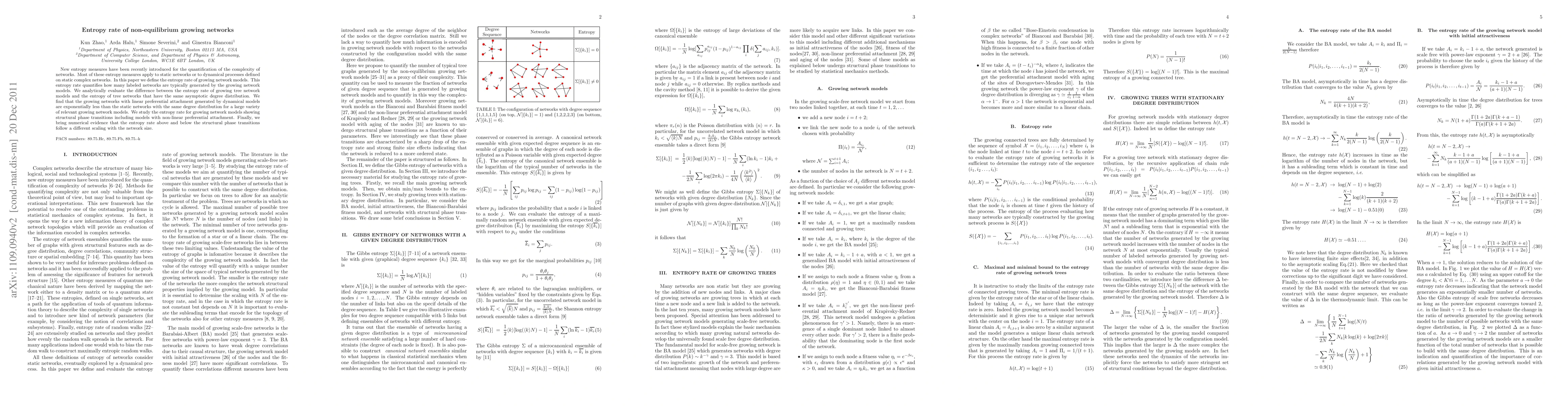 This paper introduces a new entropy rate measure for quantifying the complexity of growing network models, comparing it to static networks with the same degree distribution. It finds that growing networks with linear preferential attachment have significantly lower entropy rates, and explores how this measure scales with network size across models with structural phase transitions.