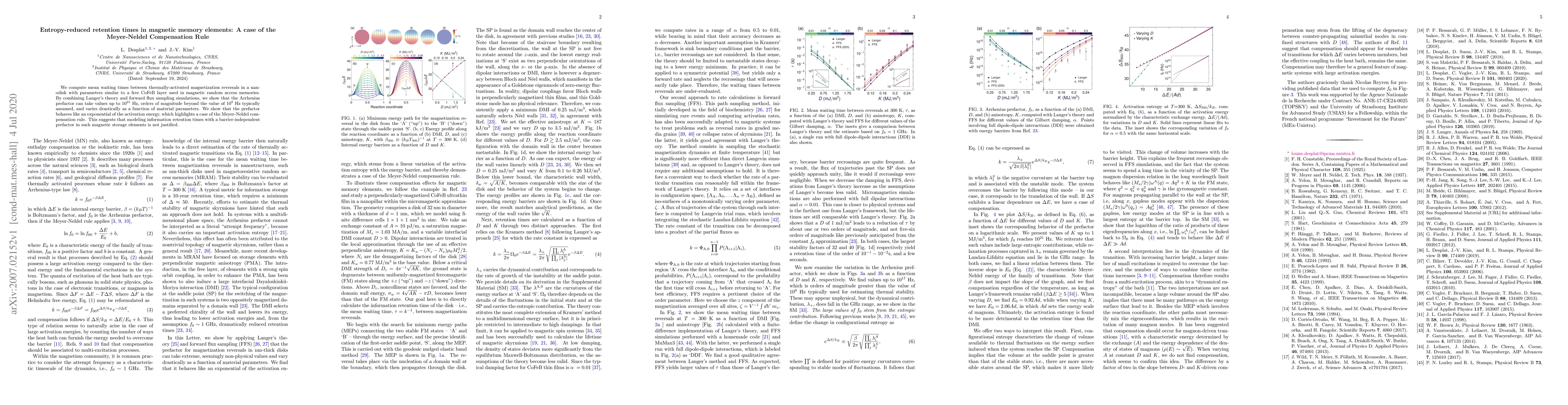 This study investigates mean waiting times for magnetization reversals in CoFeB nanodisks used in magnetic memory, revealing that the Arrhenius prefactor can reach up to 10$^{21}$ Hz, significantly exceeding the typical assumption of 10$^{9}$ Hz. The findings demonstrate a Meyer-Neldel compensation rule, indicating that a barrier-independent prefactor is inadequate for modeling retention times.