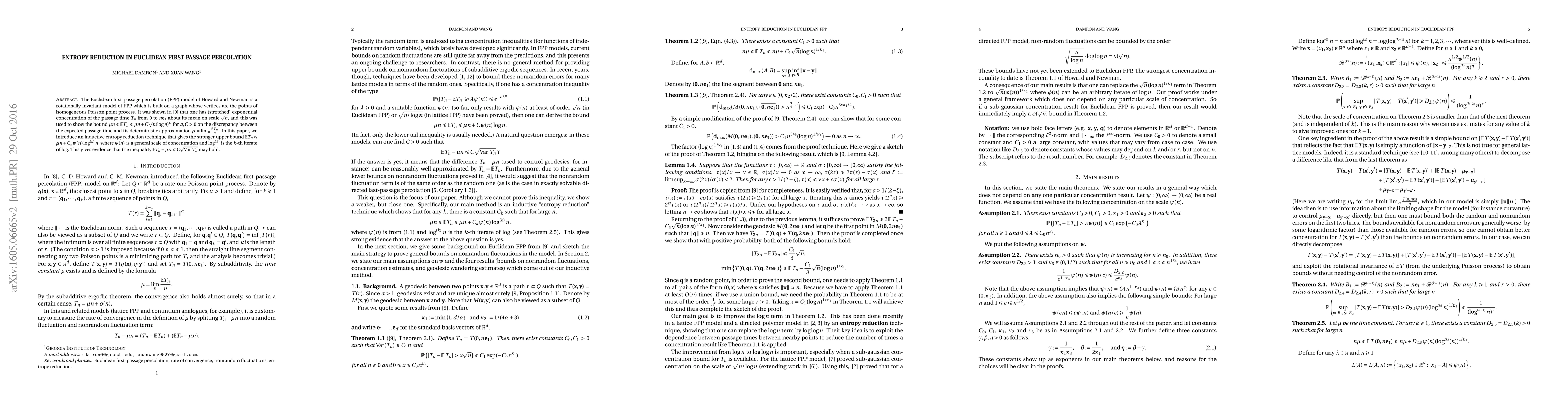 This paper introduces an entropy reduction technique to improve the upper bound on the expected passage time in Euclidean first-passage percolation, achieving $\mathbb{E}T_n \leq \mu n + C_k\psi(n) \log^{(k)}n$ and suggesting the potential validity of $\mathbb{E}T_n - \mu n \leq C\sqrt{\mathrm{Var}~T_n}$.