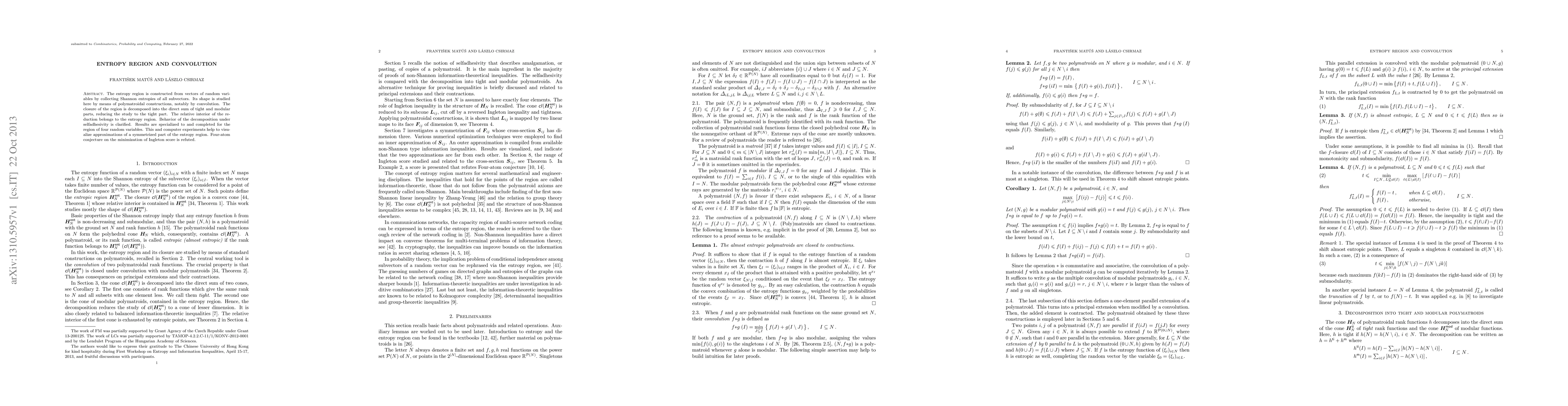 This paper constructs the entropy region from Shannon entropies of subvectors of random variables and studies its shape using polymatroidal constructions, particularly convolution. It decomposes the closure into tight and modular parts, focusing on the tight part, and refutes the four-atom conjecture on minimizing the Ingleton score.