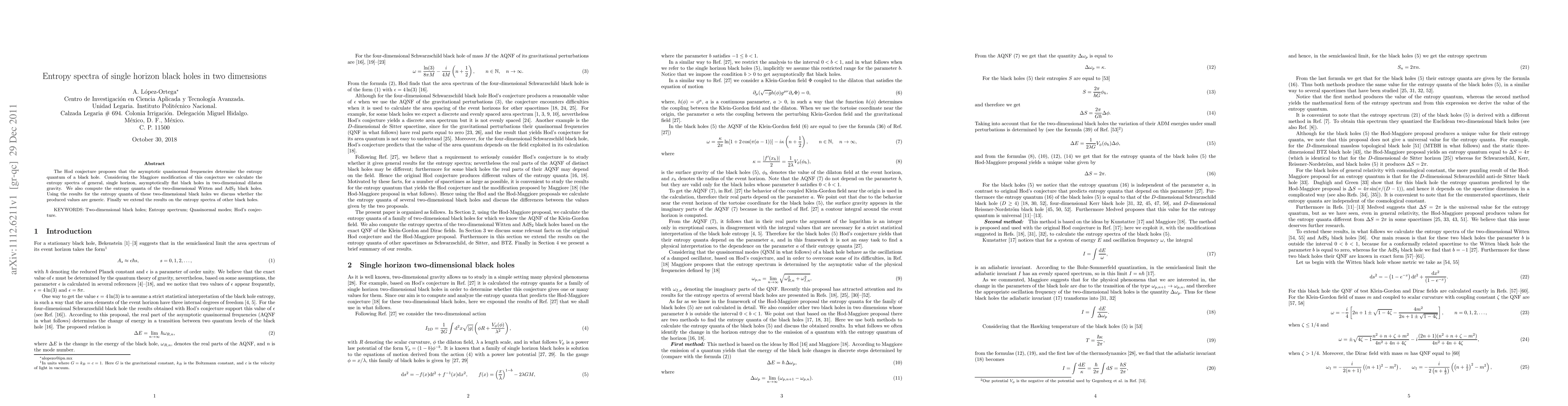 The Hod conjecture proposes that the asymptotic quasinormal frequencies determine the entropy quantum of a black hole. Considering the Maggiore modification of this conjecture we calculate the entropy spectra of general, single horizon, asymptotically flat black holes in two-dimensional dilaton gravity. We also compute the entropy quanta of the two-dimensional Witten and AdS(2) black holes. Using the results for the entropy quanta of these two-dimensional black holes we discuss whether the produced values are generic. Finally we extend the results on the entropy spectra of other black holes.