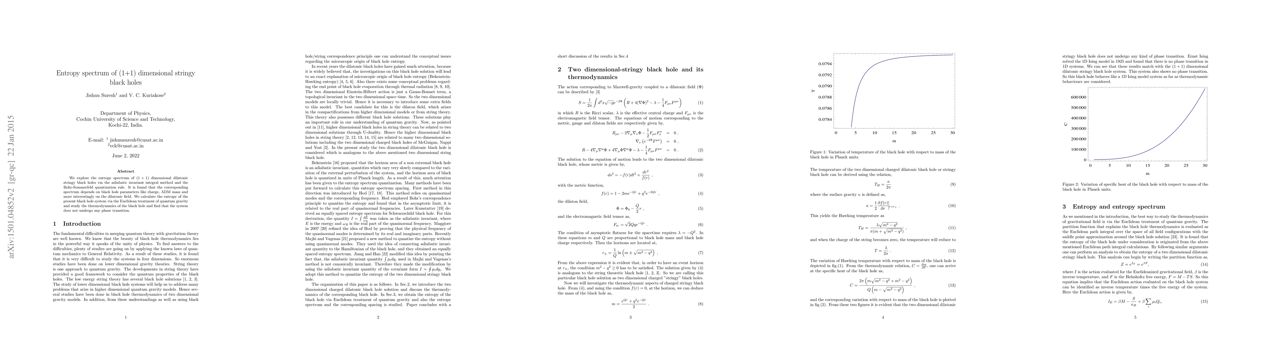 This paper examines the entropy spectrum of $(1+1)$ dimensional dilatonic stringy black holes using adiabatic invariant integral and Bohr-Sommerfeld quantization, revealing dependencies on charge, ADM mass, and the dilatonic field. The study finds no phase transition in the thermodynamics of these black holes.