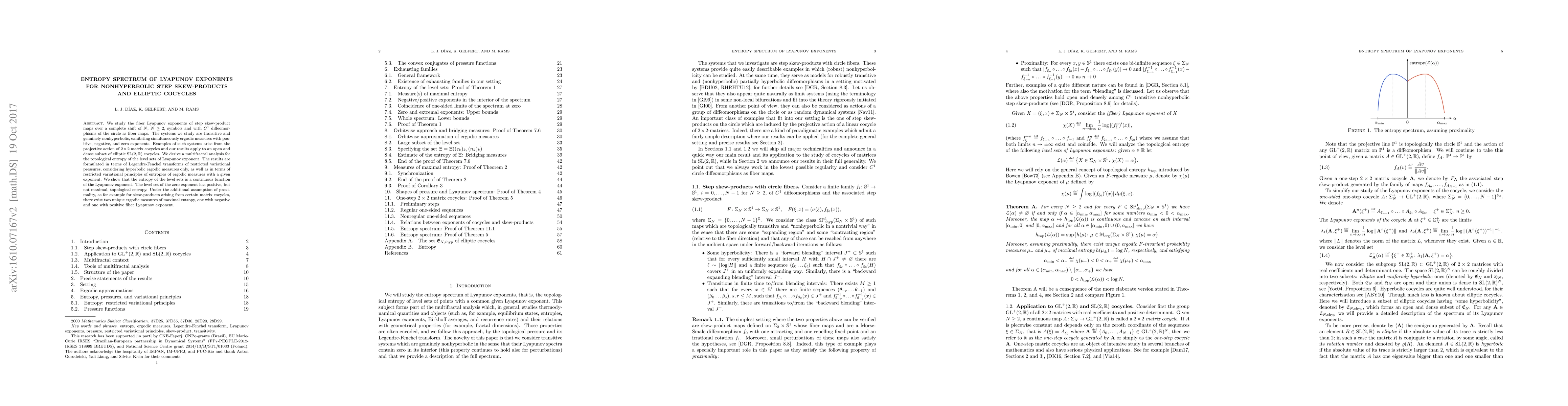 This paper investigates the entropy spectrum of Lyapunov exponents for nonhyperbolic step skew-product maps and elliptic cocycles, deriving a multifractal analysis for their topological entropy. It shows that the entropy of level sets is a continuous function of the Lyapunov exponent, with the zero exponent level set having positive but not maximal entropy.