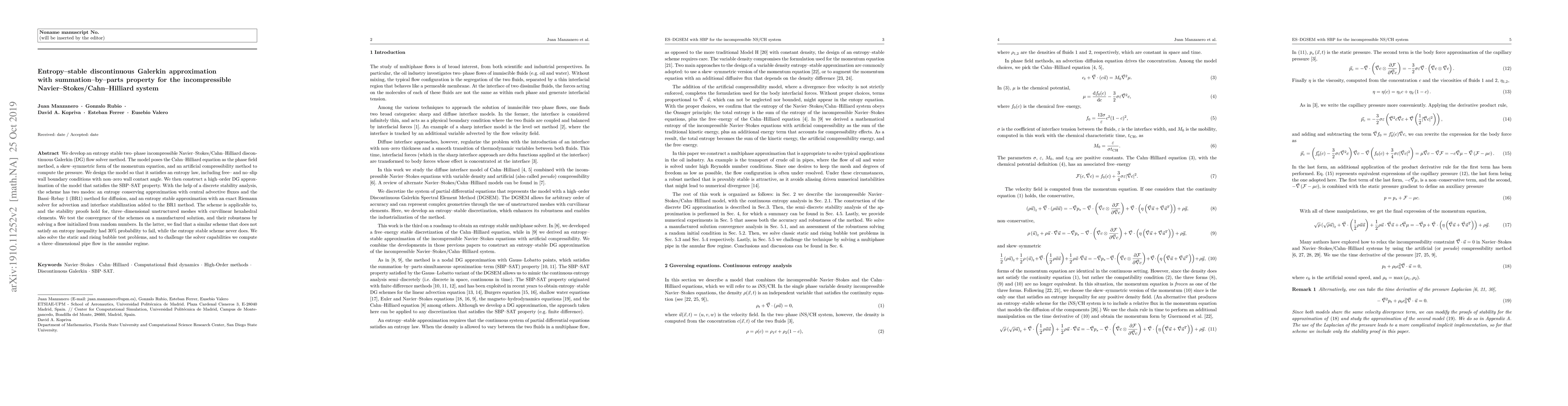 This paper presents an entropy-stable discontinuous Galerkin solver for the incompressible Navier-Stokes/Cahn-Hilliard system, ensuring satisfaction of the summation-by-parts (SBP)-stability-preserving (SAT) property. The method is shown to robustly handle three-dimensional unstructured meshes, demonstrating superior stability compared to an entropy-inconsistent counterpart.