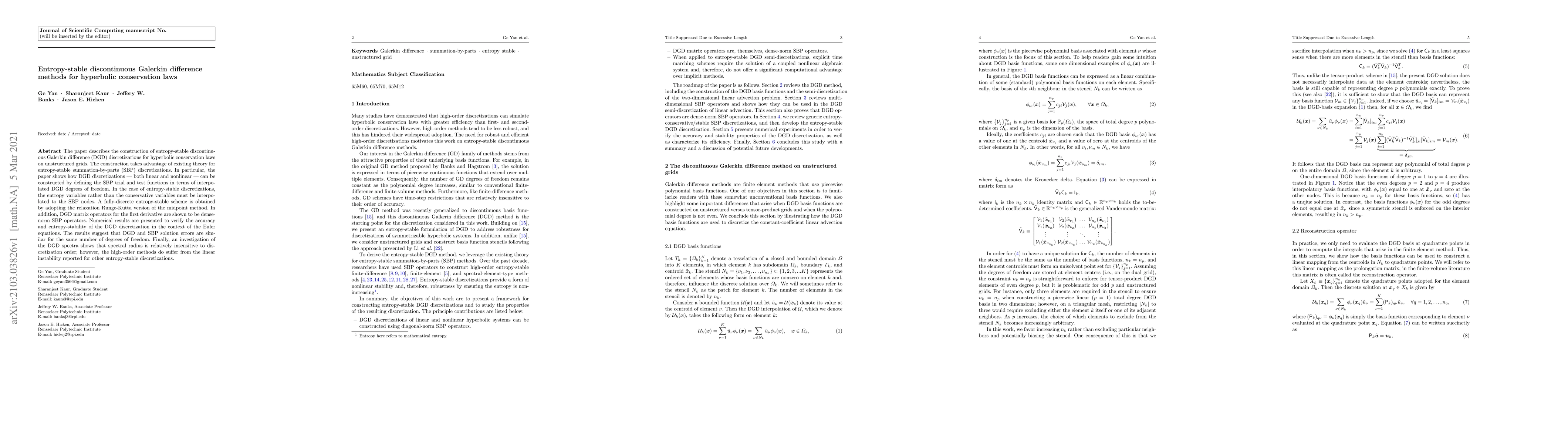 This paper constructs entropy-stable discontinuous Galerkin difference methods for hyperbolic conservation laws using summation-by-parts discretizations, validated through numerical results on the Euler equations, showing comparable accuracy and stability to existing methods.