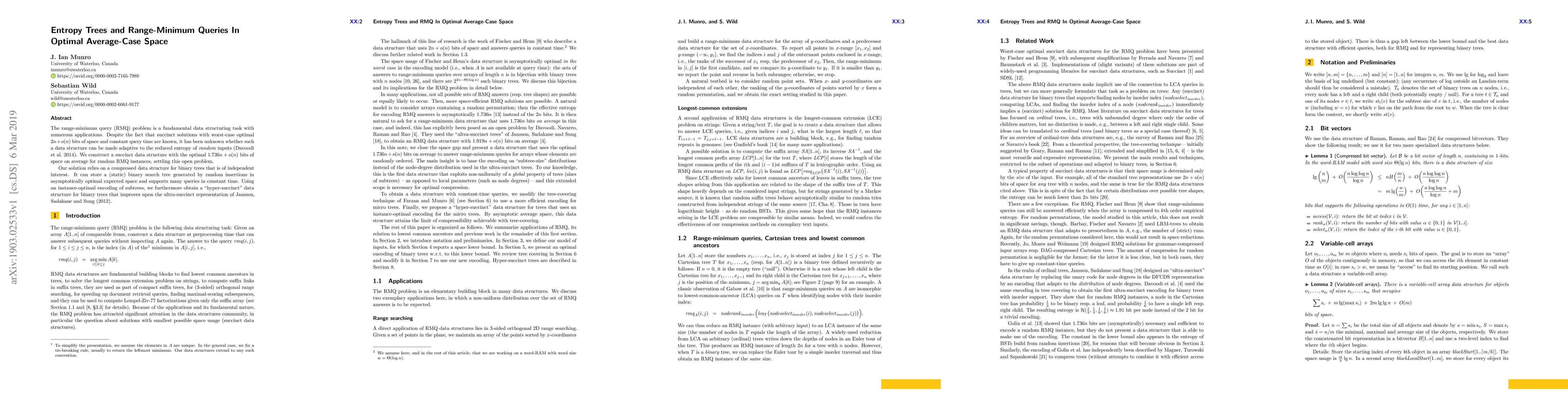 The range-minimum query (RMQ) problem is a fundamental data structuring task with numerous applications. Despite the fact that succinct solutions with worst-case optimal $2n+o(n)$ bits of space and constant query time are known, it has been unknown whether such a data structure can be made adaptive to the reduced entropy of random inputs (Davoodi et al. 2014). We construct a succinct data structure with the optimal $1.736n+o(n)$ bits of space on average for random RMQ instances, settling this open problem. Our solution relies on a compressed data structure for binary trees that is of independent interest. It can store a (static) binary search tree generated by random insertions in asymptotically optimal expected space and supports many queries in constant time. Using an instance-optimal encoding of subtrees, we furthermore obtain a "hyper-succinct" data structure for binary trees that improves upon the ultra-succinct representation of Jansson, Sadakane and Sung (2012).