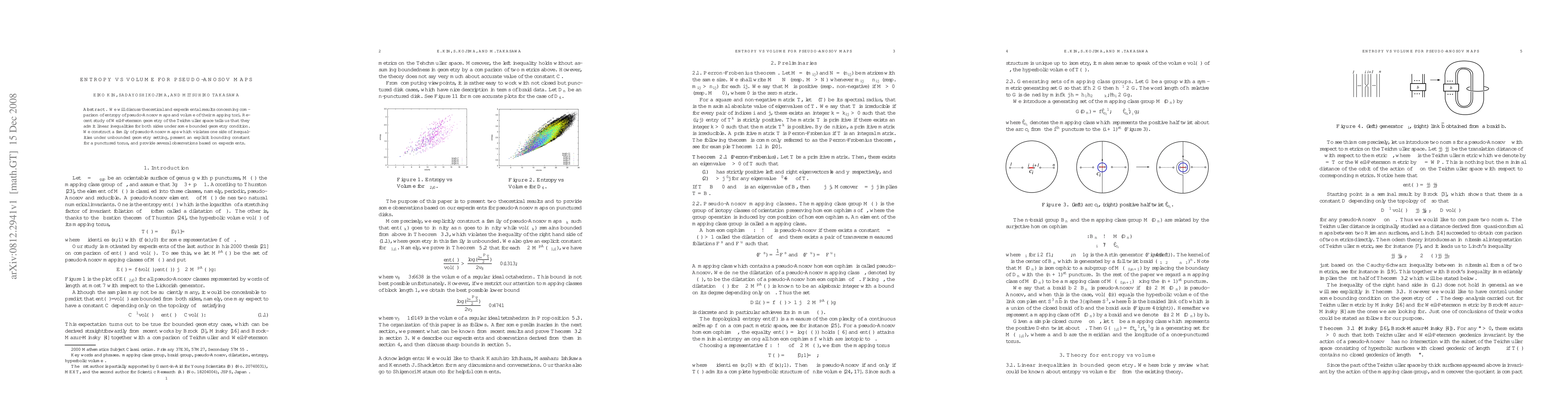 This paper compares entropy and volume in pseudo-Anosov maps, revealing linear inequalities under bounded geometry conditions. It constructs a family of maps violating these inequalities in an unbounded geometry setting, provides a bounding constant for a punctured torus, and offers experimental observations.