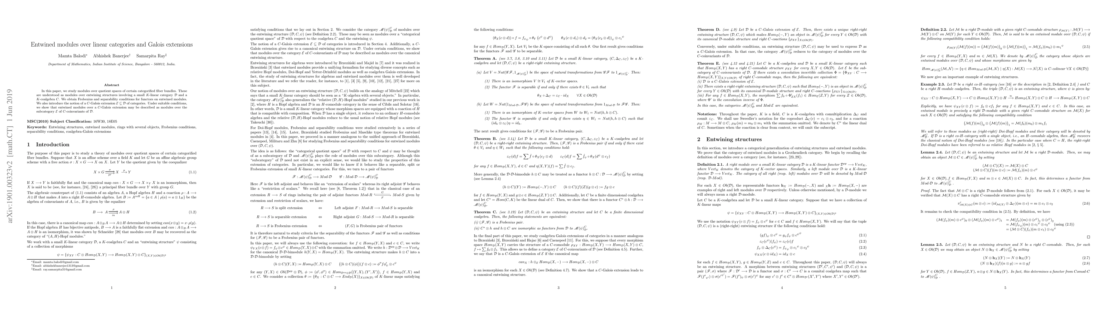 This paper explores modules over quotient spaces of categorified fiber bundles, focusing on entwined structures using a $K$-linear category and a $K$-coalgebra. It establishes Frobenius and separability conditions for functors on these modules and introduces $C$-Galois extensions of categories, demonstrating that entwined modules over such extensions can be viewed as modules over the subcategory of $C$-coinvariants.