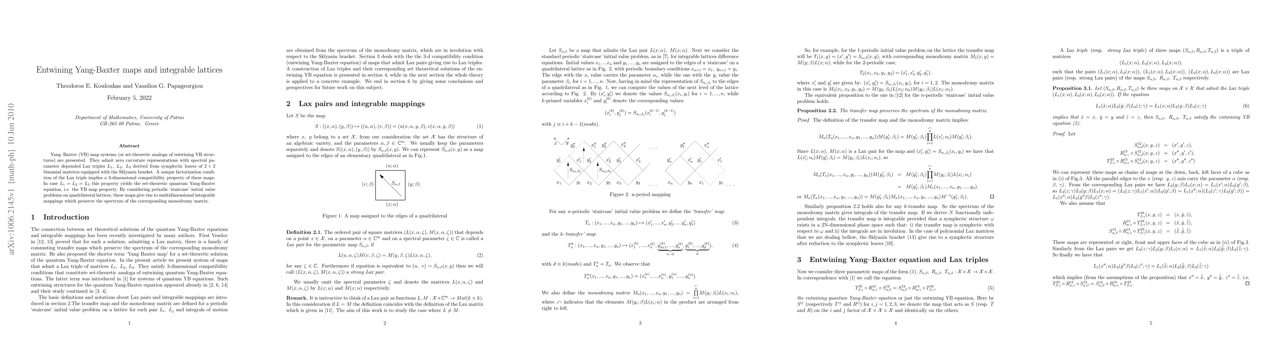 Yang-Baxter (YB) map systems (or set-theoretic analoga of entwining YB structures) are presented. They admit zero curvature representations with spectral parameter depended Lax triples L1, L2, L3 derived from symplectic leaves of 2 x 2 binomial matrices equipped with the Sklyanin bracket. A unique factorization condition of the Lax triple implies a 3-dimensional compatibility property of these maps. In case L1 = L2 = L3 this property yields the se--theoretic quantum Yang-Baxter equation, i.e. the YB map property. By considering periodic 'staircase' initial value problems on quadrilateral lattices, these maps give rise to multidimensional integrable mappings which preserve the spectrum of the corresponding monodromy matrix.