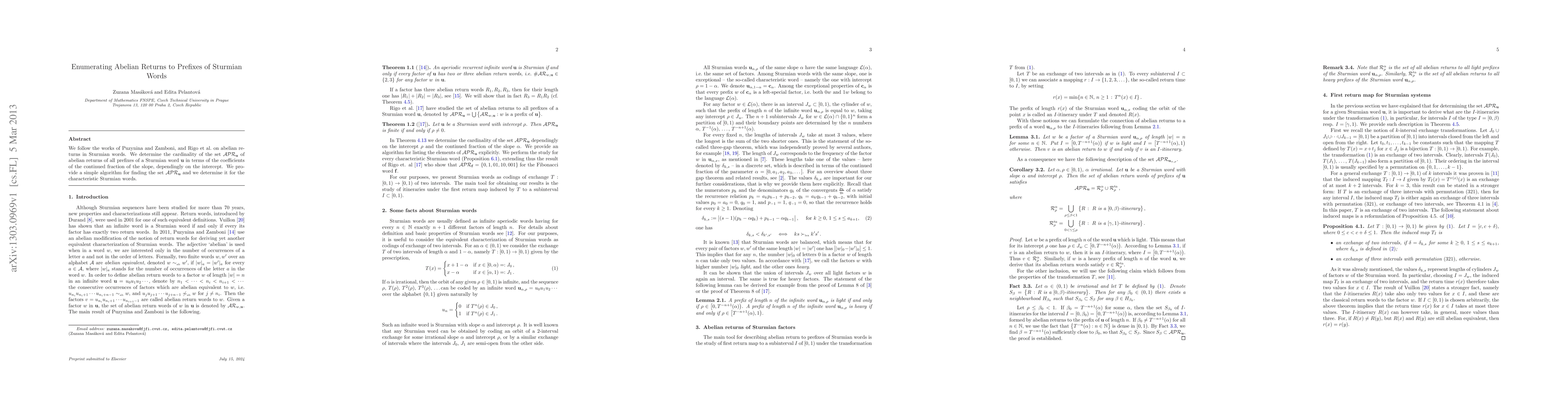 This paper determines the cardinality of abelian returns in all prefixes of Sturmian words, linking it to the continued fraction coefficients of the word's slope, and provides an algorithm for finding this set, specifically for characteristic Sturmian words.
