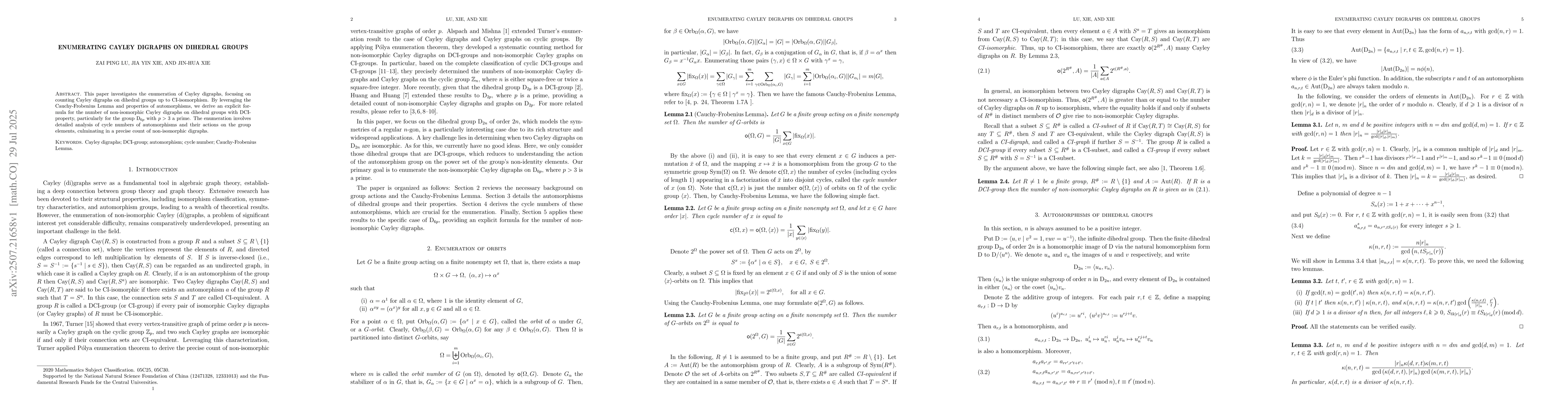 This paper investigates the enumeration of Cayley digraphs, focusing on counting Cayley digraphs on dihedral groups up to CI-isomorphism. By leveraging the Cauchy-Frobenius Lemma and properties of automorphisms, we derive an explicit formula for the number of non-isomorphic Cayley digraphs on dihedral groups with DCI-property, particularly for the group $\mathrm{D}_{6p}$ with $p>3$ a prime. The enumeration involves detailed analysis of cycle numbers of automorphisms and their actions on the group elements, culminating in a precise count of non-isomorphic digraphs.