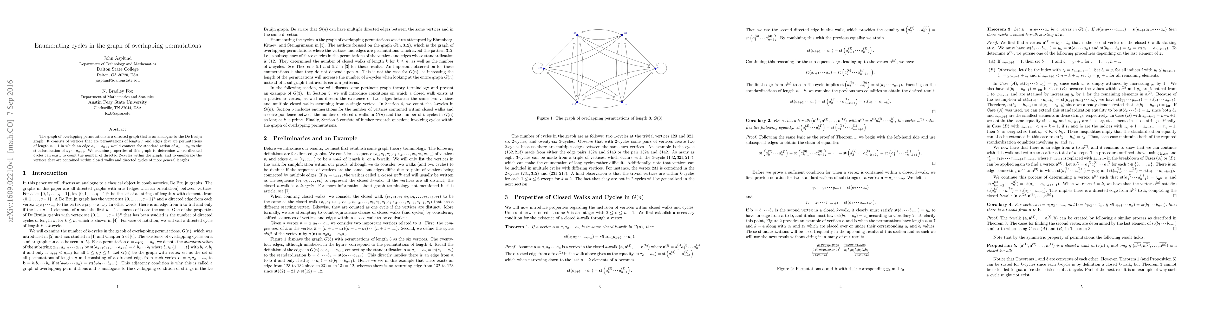 This paper studies the graph of overlapping permutations, exploring where directed cycles can exist and counting 2-cycles, with key findings on vertices within closed walks and cycles of various lengths.