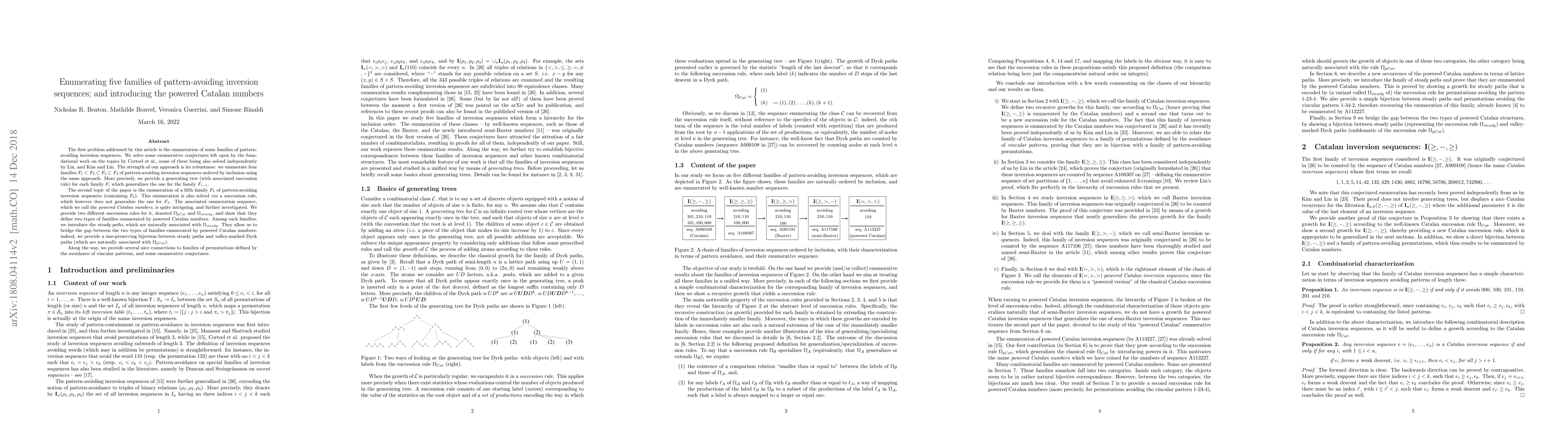 This paper enumerates five families of pattern-avoiding inversion sequences, solving several open conjectures and introducing the powered Catalan numbers. It uses a robust generating tree approach to enumerate four nested families and provides a new succession rule for the fifth, linking it to steady paths and valley-marked Dyck paths.