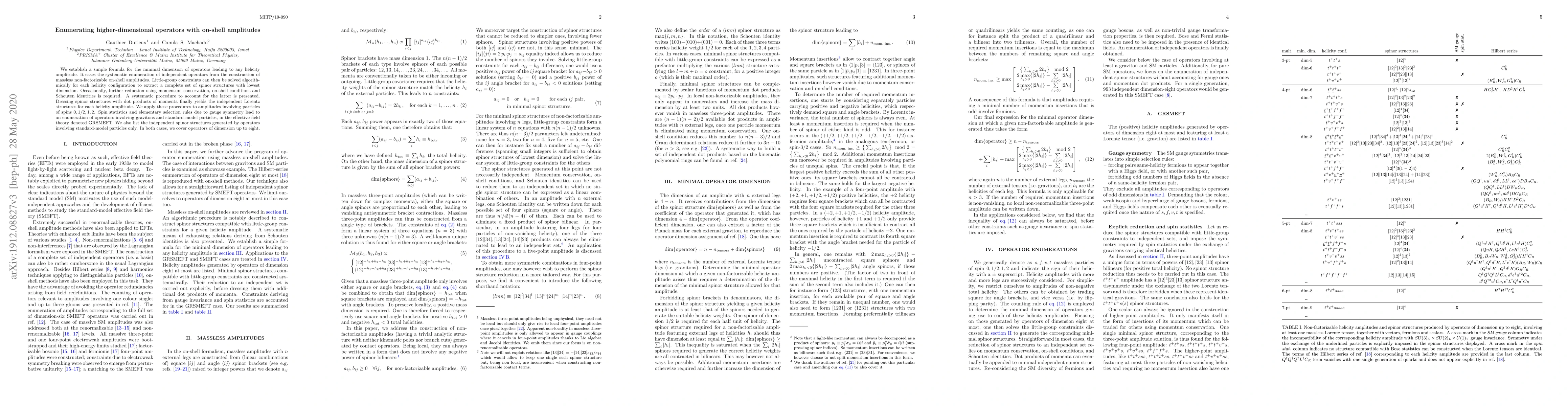 We establish a simple formula for the minimal dimension of operators leading to any helicity amplitude. It eases the systematic enumeration of independent operators from the construction of massless non-factorizable on-shell amplitudes. Little-group constraints can then be solved algorithmically for each helicity configuration to extract a complete set of spinor structures with lowest dimension. Occasionally, further reduction using momentum conservation, on-shell conditions and Schouten identities is required. A systematic procedure to account for the latter is presented. Dressing spinor structures with dot products of momenta finally yields the independent Lorentz structures for each helicity amplitude. We apply these procedures to amplitudes involving particles of spins 0,1/2,1,2. Spin statistics and elementary selection rules due to gauge symmetry lead to an enumeration of operators involving gravitons and standard-model particles, in the effective field theory denoted GRSMEFT. We also list the independent spinor structures generated by operators involving standard-model particles only. In both cases, we cover operators of dimension up to eight.