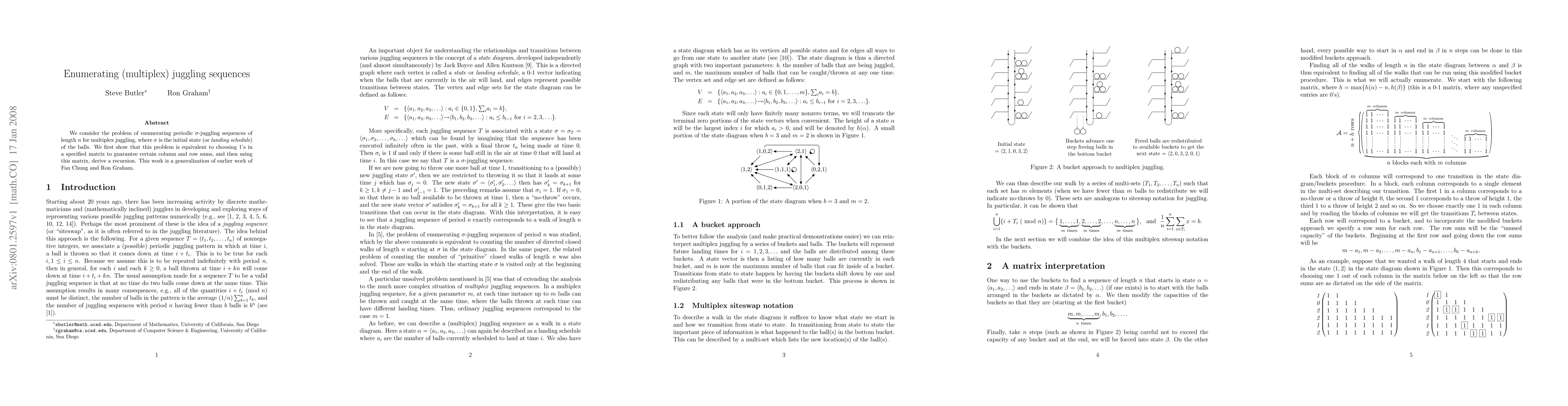 This paper enumerates periodic $\sigma$-juggling sequences of length $n$ in multiplex juggling, showing their equivalence to selecting 1's in a matrix to meet specified column and row sums, and derives a recursion for this enumeration, extending previous work by Fan Chung and Ron Graham.