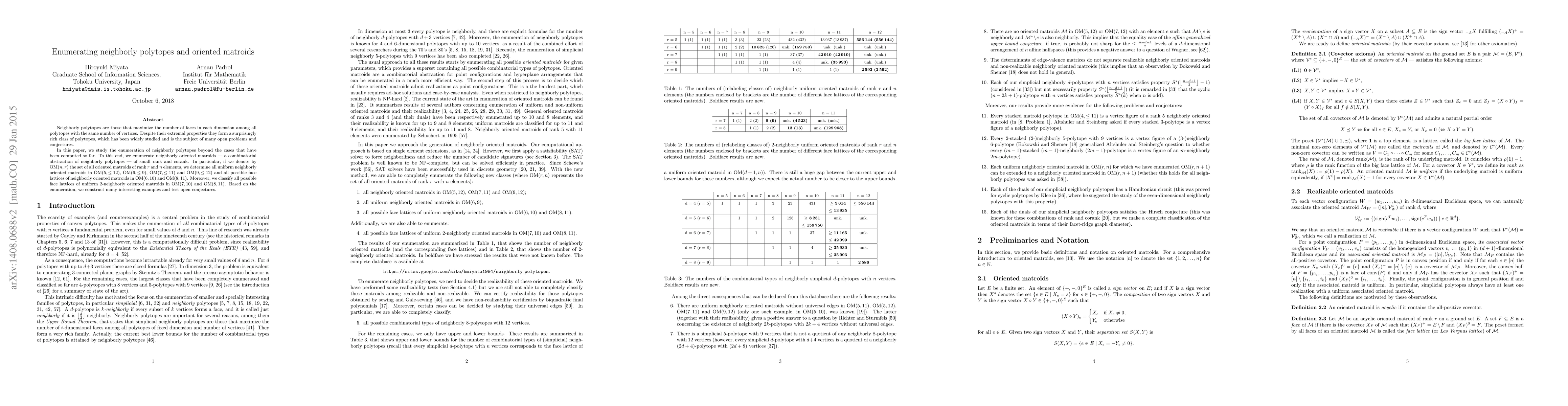 This paper enumerates neighborly oriented matroids of small rank and corank, focusing on OM($5,\leq 12$), OM($6,\leq 9$), OM($7,\leq 11$), and OM($9,\leq 12$), and determines all uniform neighborly oriented matroids in these sets, as well as possible face lattices in OM($6,10$) and OM($8,11$). The work also classifies face lattices for uniform $2$-neighborly oriented matroids in OM($7,10$) and OM($8,11$).