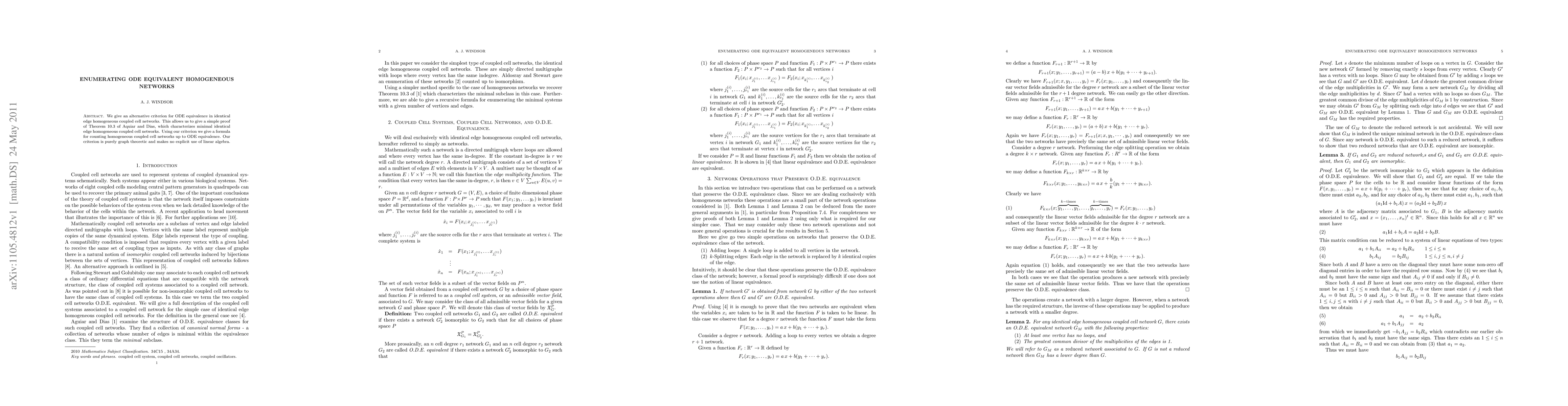 We give an simple criterion for ODE equivalence in identical edge homogeneous coupled cell networks. This allows us to give a simple proof of Theorem 10.3 of Aquiar and Dias "Minimal Coupled Cell Networks", which characterizes minimal identical edge homogeneous coupled cell networks. Using our criterion we give a formula for counting homogeneous coupled cell networks up to ODE equivalence. Our criterion is purely graph theoretic and makes no explicit use of linear algebra.
