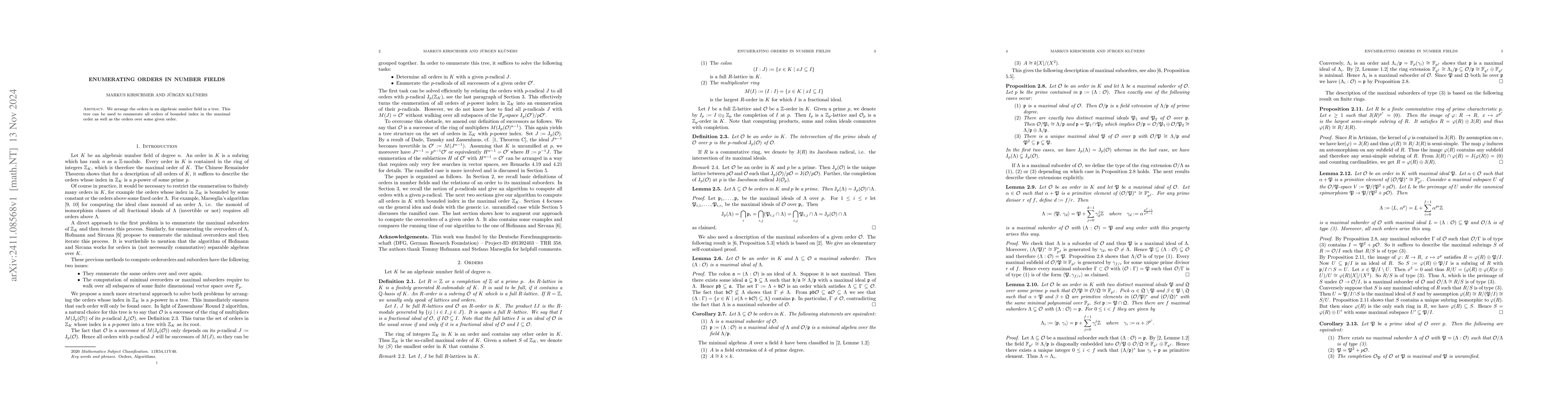 The paper presents an algorithm to enumerate orders in number fields by arranging them in a tree, which can be used to list all orders of bounded index in the maximal order and over a given order.