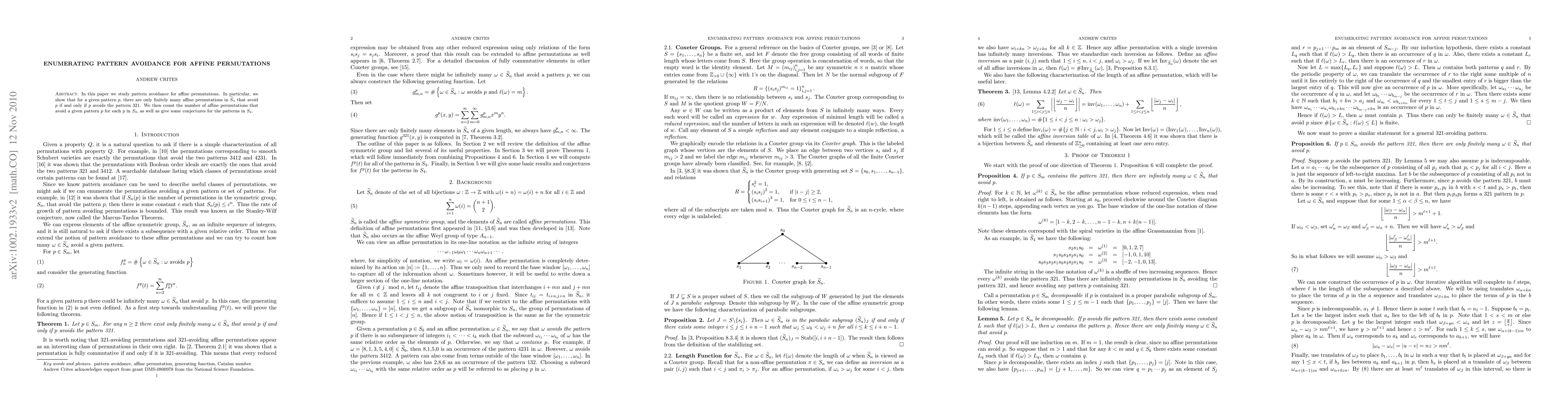 This paper investigates pattern avoidance in affine permutations, proving that only finitely many affine permutations in $\widetilde{S}_n$ avoid a given pattern p if and only if p avoids the pattern 321. It also counts the number of such permutations for patterns in S_3 and proposes conjectures for patterns in S_4.