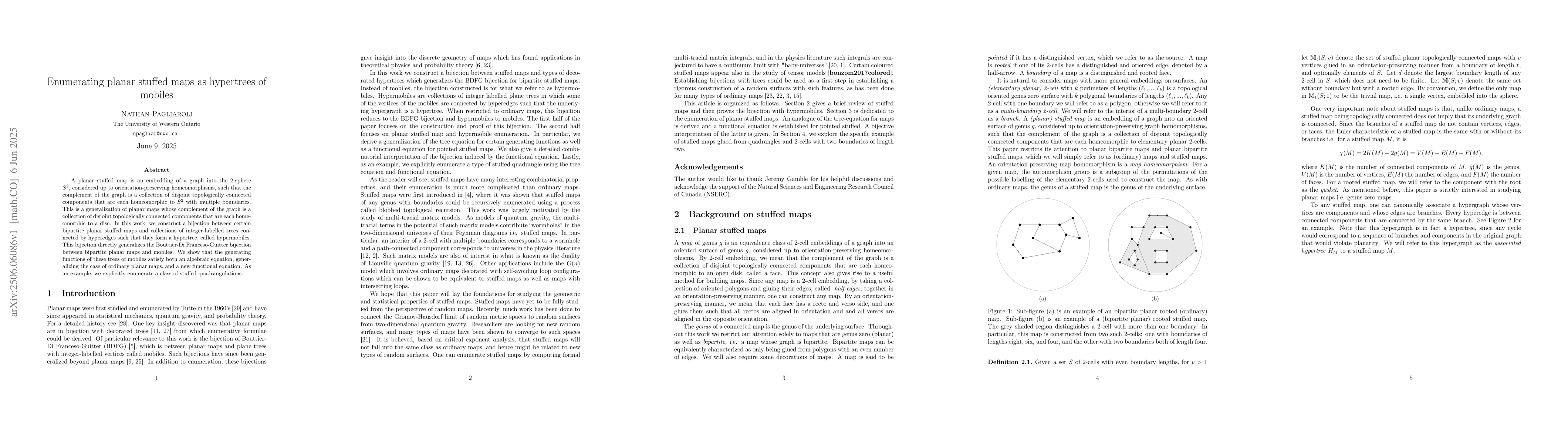 Researchers create a bijection between planar stuffed maps and collections of integer-labelled trees connected by hyperedges, which form a hypertree called hypermobiles. This generalization enables the study of generating functions and functional equations for these new structures.
