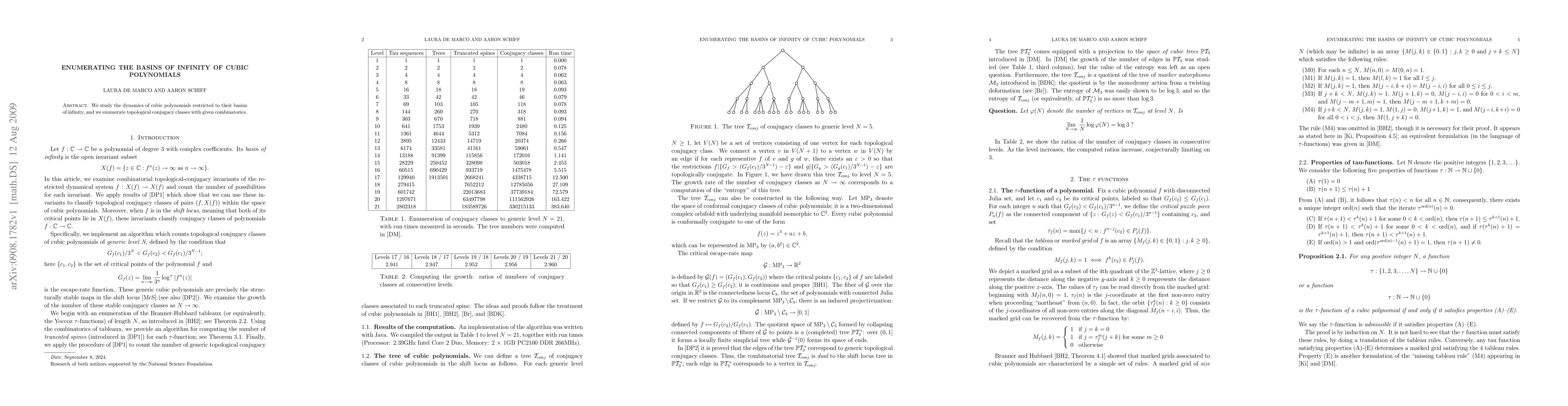 We study the dynamics of cubic polynomials restricted to their basins of infinity, and we enumerate topological conjugacy classes with given combinatorics.