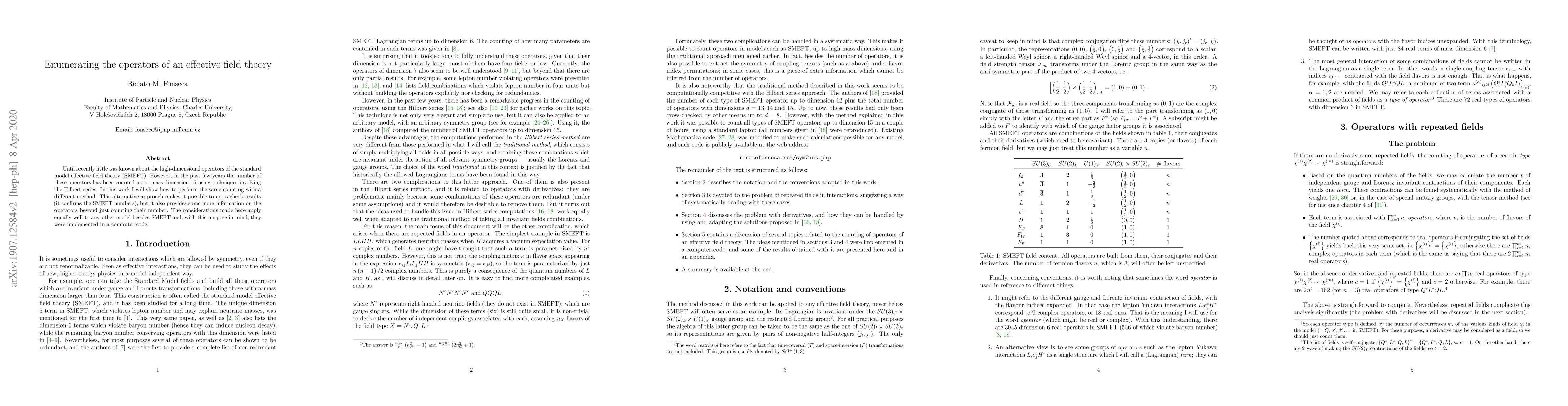 Until recently little was known about the high-dimensional operators of the standard model effective field theory (SMEFT). However, in the past few years the number of these operators has been counted up to mass dimension 15 using techniques involving the Hilbert series. In this work I will show how to perform the same counting with a different method. This alternative approach makes it possible to cross-check results (it confirms the SMEFT numbers), but it also provides some more information on the operators beyond just counting their number. The considerations made here apply equally well to any other model besides SMEFT and, with this purpose in mind, they were implemented in a computer code.