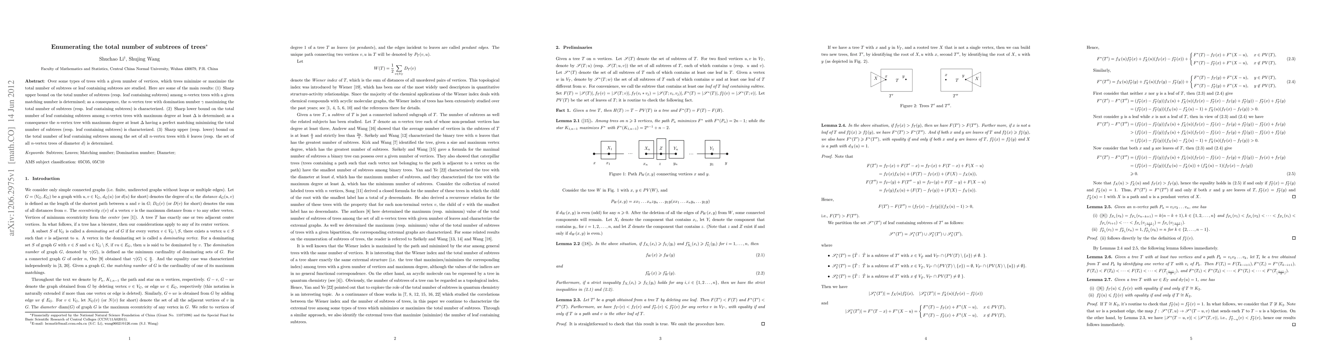 This paper studies trees with a given number of vertices to determine which trees minimize or maximize the total number of subtrees or leaf-containing subtrees. It provides sharp bounds and characterizes specific trees that achieve these bounds based on matching number, domination number, maximum degree, and other structural properties.