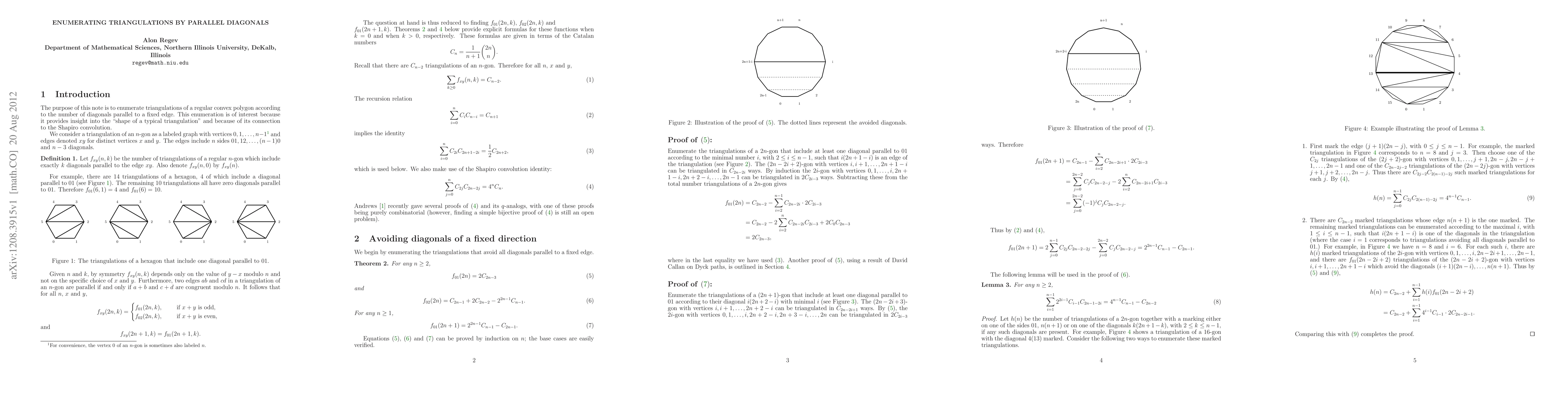 This paper enumerates triangulations of a regular convex polygon based on the number of diagonals parallel to a fixed edge, employing the Shapiro convolution identity and its combinatorial interpretation related to triangulations.