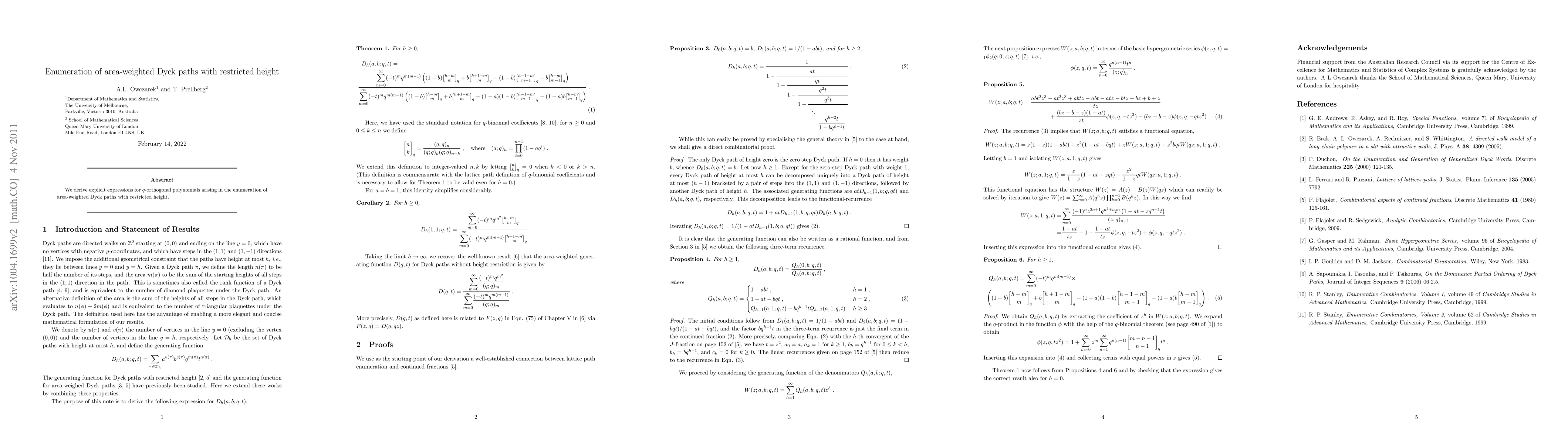 The research extends previous work on Dyck paths by incorporating height restrictions and area weighting, leading to novel q-orthogonal polynomial expressions and recurrence relations.