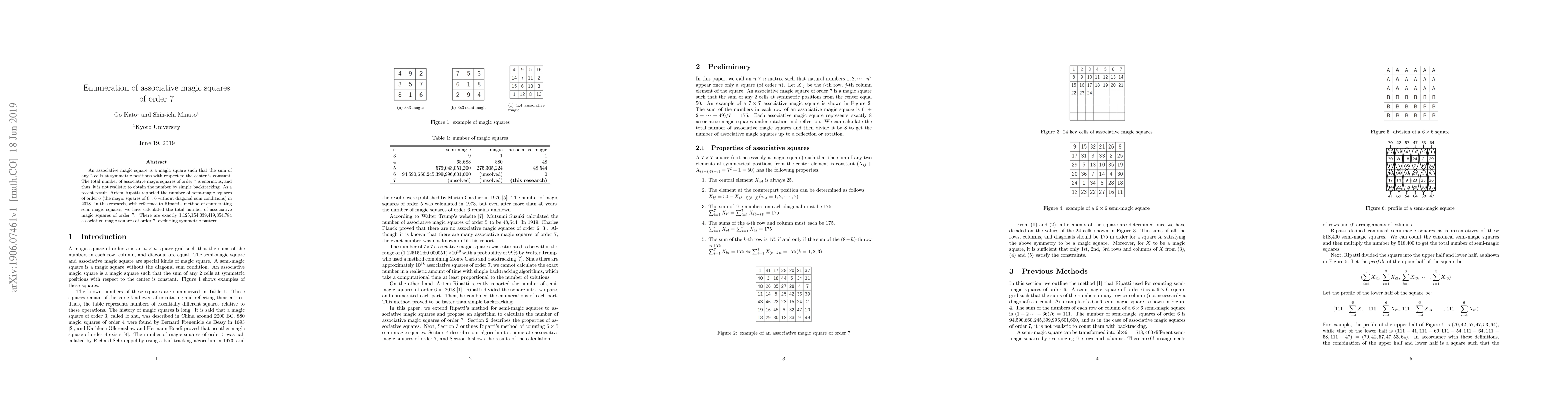 This research enumerates the total number of associative magic squares of order 7, finding exactly 1,125,154,039,419,854,784 such squares. The study employs a method similar to Artem Ripatti's approach for counting semi-magic squares of order 6 to achieve this extensive count.