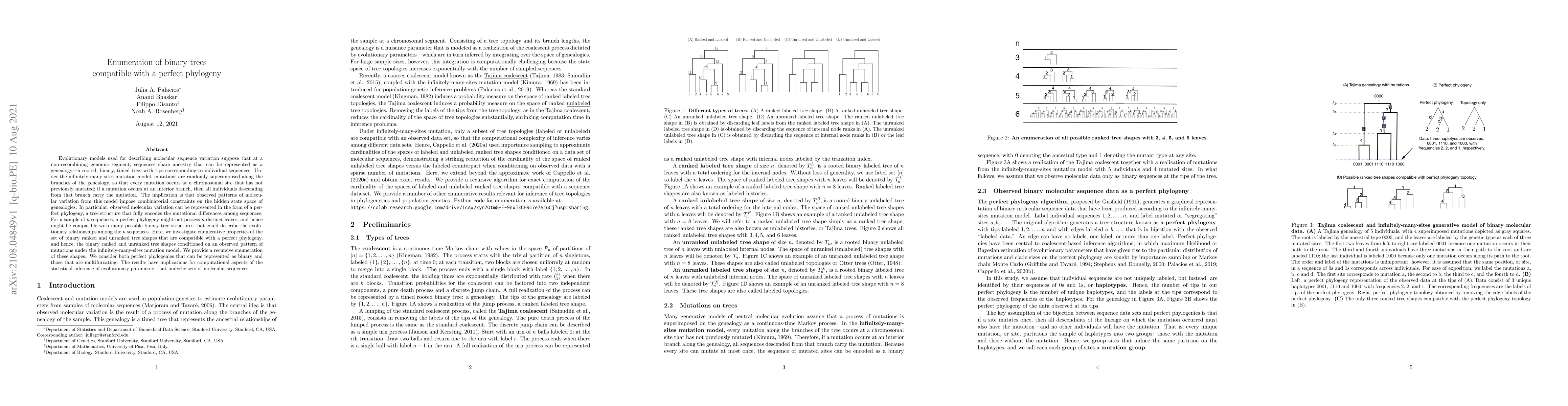 This paper investigates the enumeration of binary tree shapes compatible with perfect phylogenies under the infinitely-many-sites mutation model. It provides a recursive method to enumerate both ranked and unranked tree shapes, with implications for computational inference of evolutionary parameters from molecular sequences.