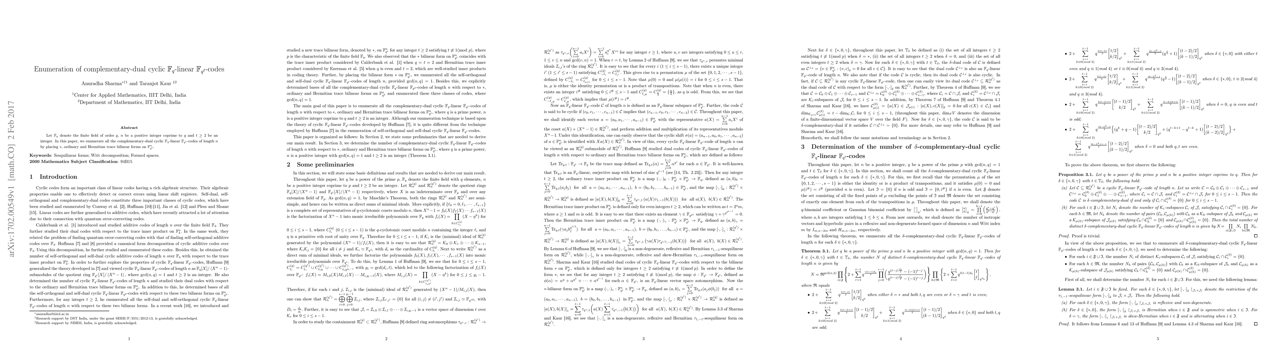 This paper enumerates all complementary-dual cyclic $\mathbb{F}_q$-linear $\mathbb{F}_{q^t}$-codes of length $n$ using $\ast$, ordinary, and Hermitian trace bilinear forms on $\mathbb{F}_{q^t}^n$. The focus is on fields $\mathbb{F}_q$ and $\mathbb{F}_{q^t}$ with specific properties.