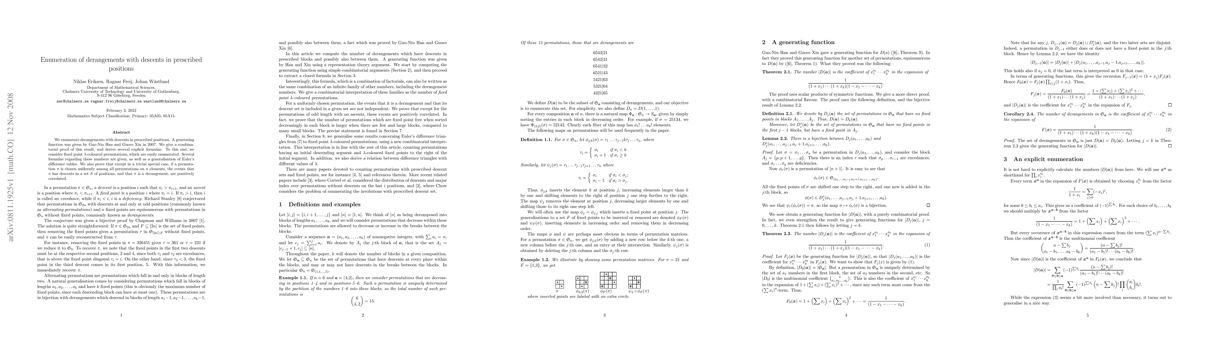 This paper enumerates derangements with specific descents in prescribed positions, providing combinatorial proofs and explicit formulas, as well as exploring correlations between derangements and their descent properties.