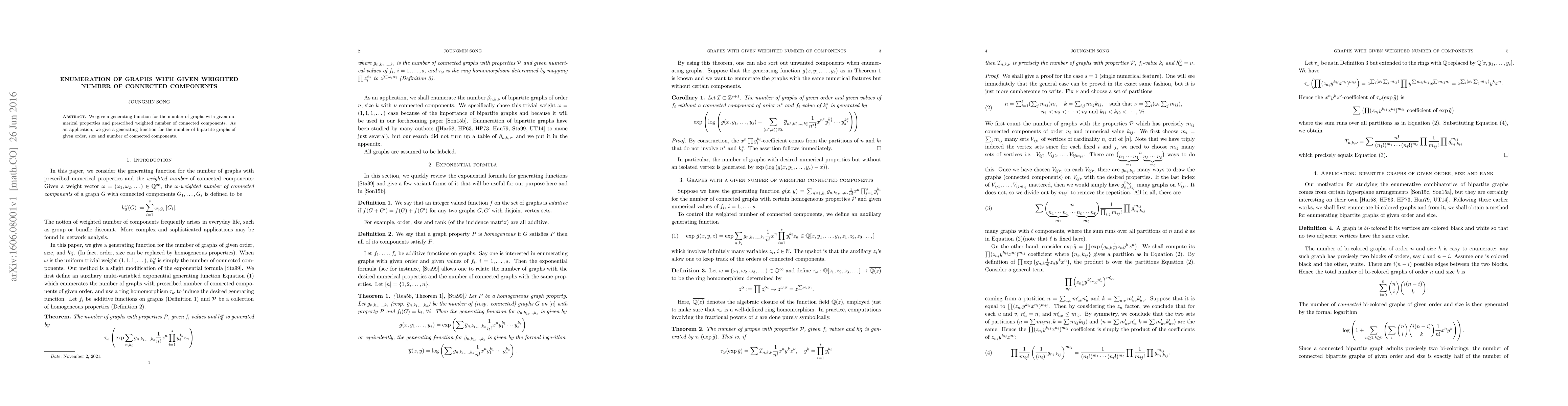 Researchers developed a generating function to count graphs with specified properties and a given number of connected components, including applications for bipartite graphs.