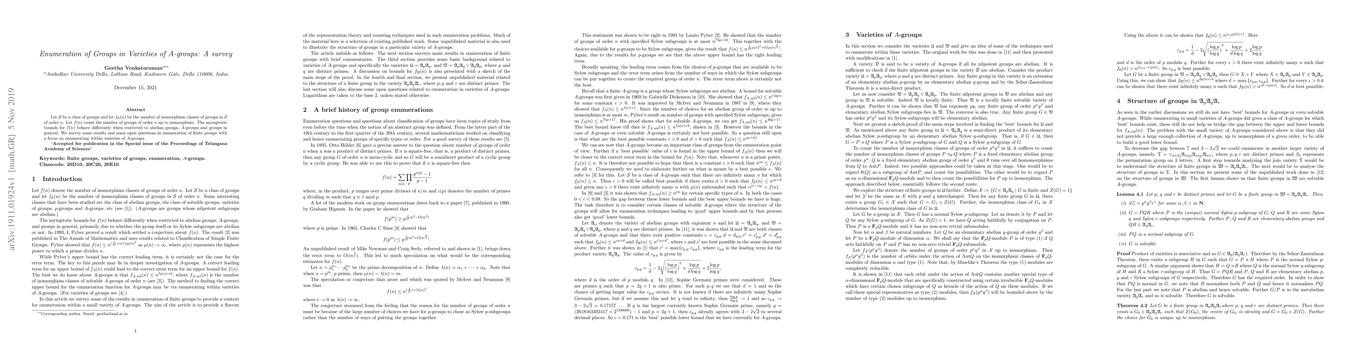 The paper surveys research on counting groups of different orders within varieties of A-groups, focusing on asymptotic bounds and open questions. It aims to provide a comprehensive overview of the current state of knowledge in enumerating finite groups within specific types of A-groups.