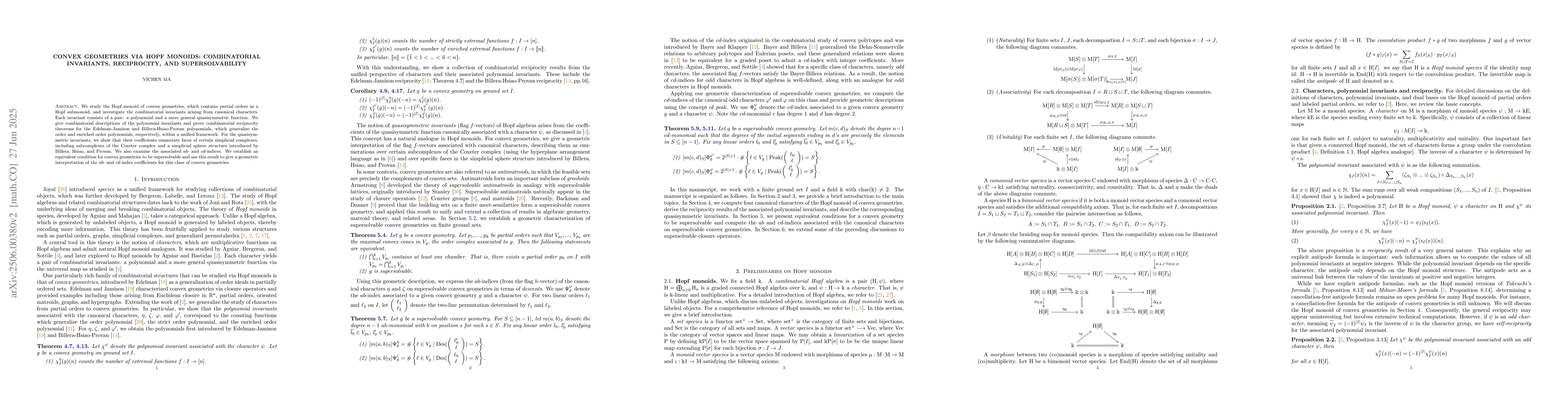 The research investigates combinatorial invariants constructed from canonical characters on Hopf monoids of convex geometries, providing combinatorial descriptions of polynomial invariants and proving reciprocity theorems.