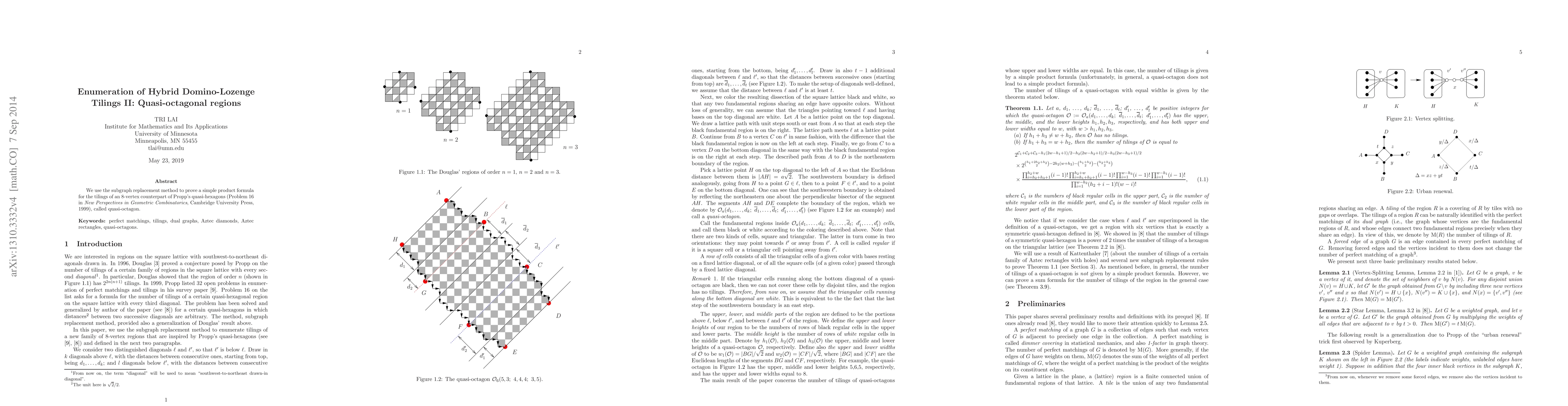 Two-line summary: This paper employs the subgraph replacement method to derive a straightforward product formula for tiling quasi-octagonal regions, which are 8-vertex extensions of Propp's quasi-hexagons. The findings address Problem 16 from "New Perspectives in Geometric Combinatorics."