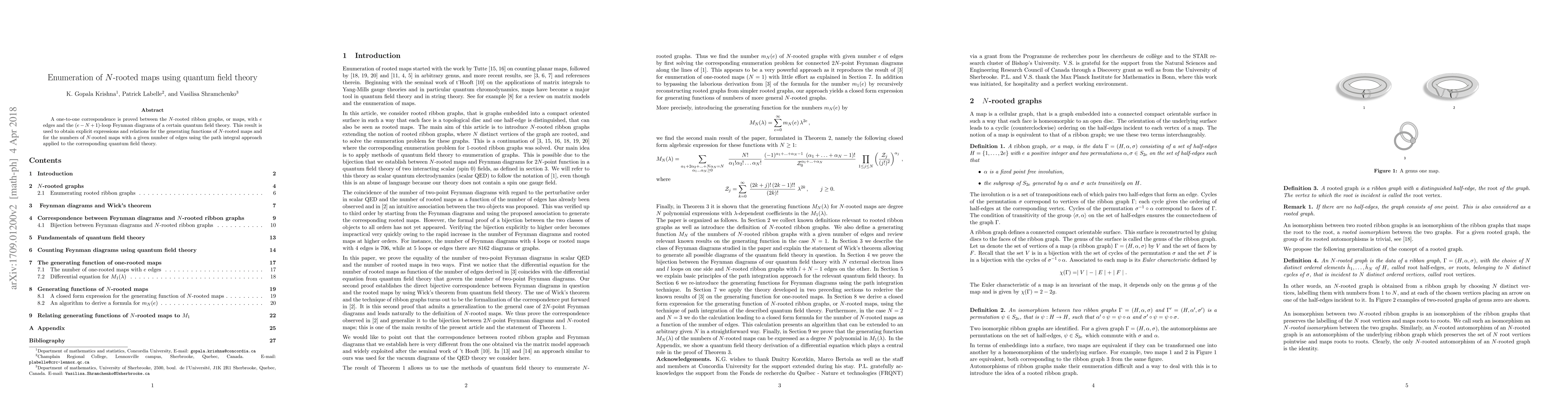 This paper establishes a one-to-one correspondence between N-rooted ribbon graphs and (e-N+1)-loop Feynman diagrams in a specific quantum field theory, and uses this to derive generating functions and explicit counts for N-rooted maps via a path integral approach.