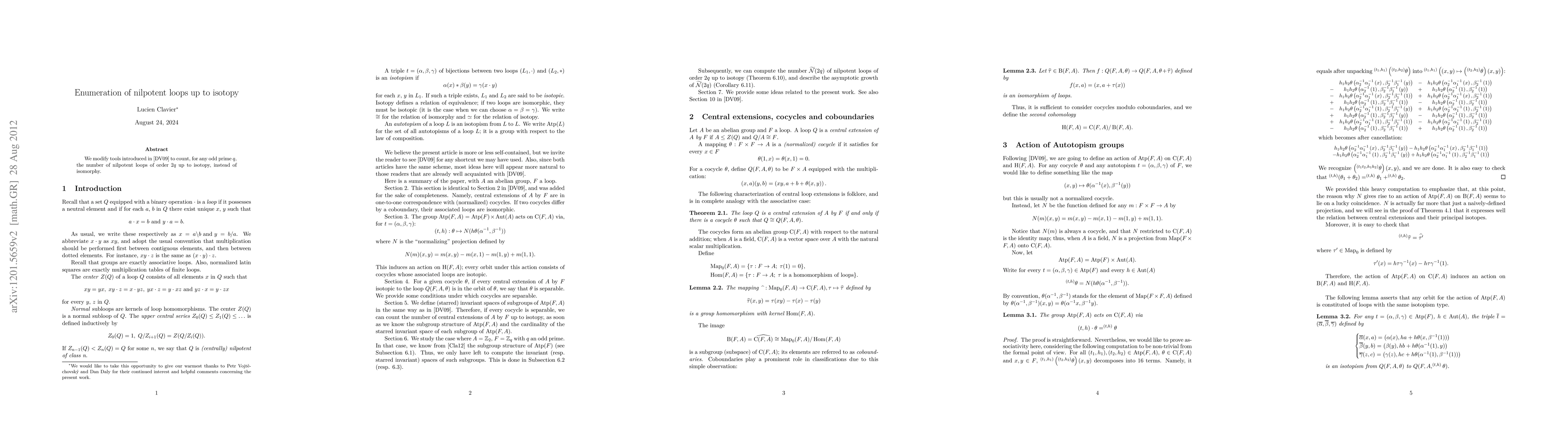 This paper refines existing enumeration techniques to count nilpotent loops of order 2q up to isotopy, rather than isomorphism, for any odd prime q, building on the work of Daniel Daly and Petr Vojtechovsky. The focus is on distinguishing loops based on their topological rather than algebraic structure.