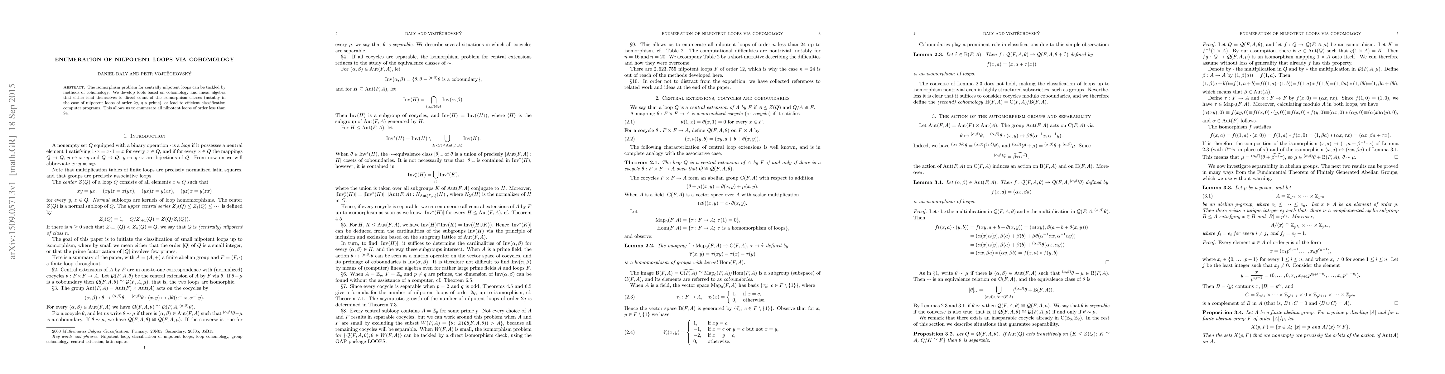 The isomorphism problem for centrally nilpotent loops can be tackled by methods of cohomology. We develop tools based on cohomology and linear algebra that either lend themselves to direct count of the isomorphism classes (notably in the case of nilpotent loops of order $2q$, $q$ a prime), or lead to efficient classification computer programs. This allows us to enumerate all nilpotent loops of order less than $24$.