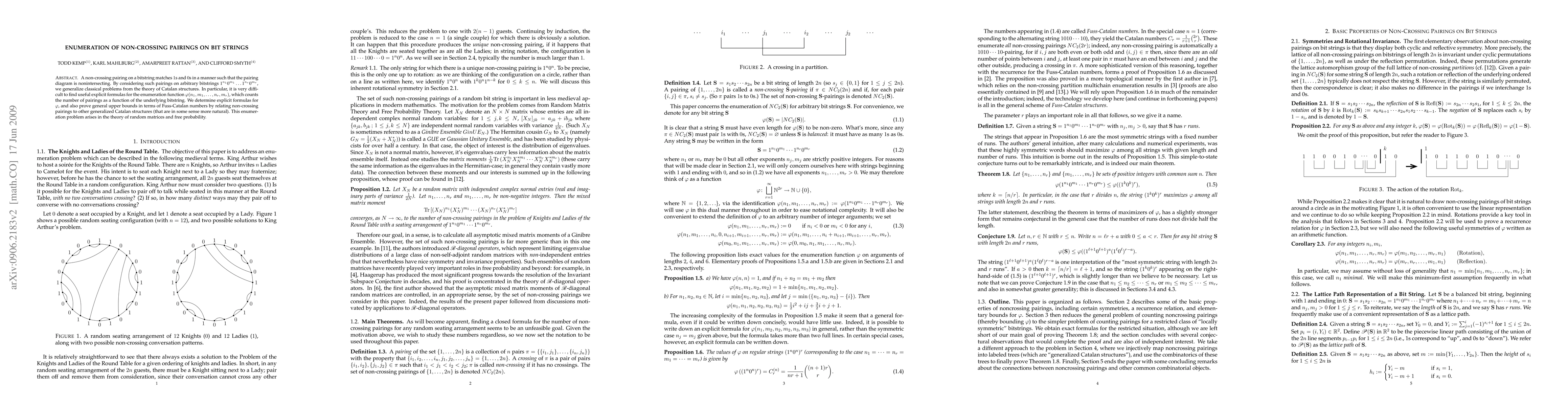 This paper enumerates non-crossing pairings on bitstrings, providing explicit formulas for the count function $\phi$ and proving upper bounds in terms of Fuss-Catalan numbers. The enumeration problem is linked to random matrices and free probability theory.
