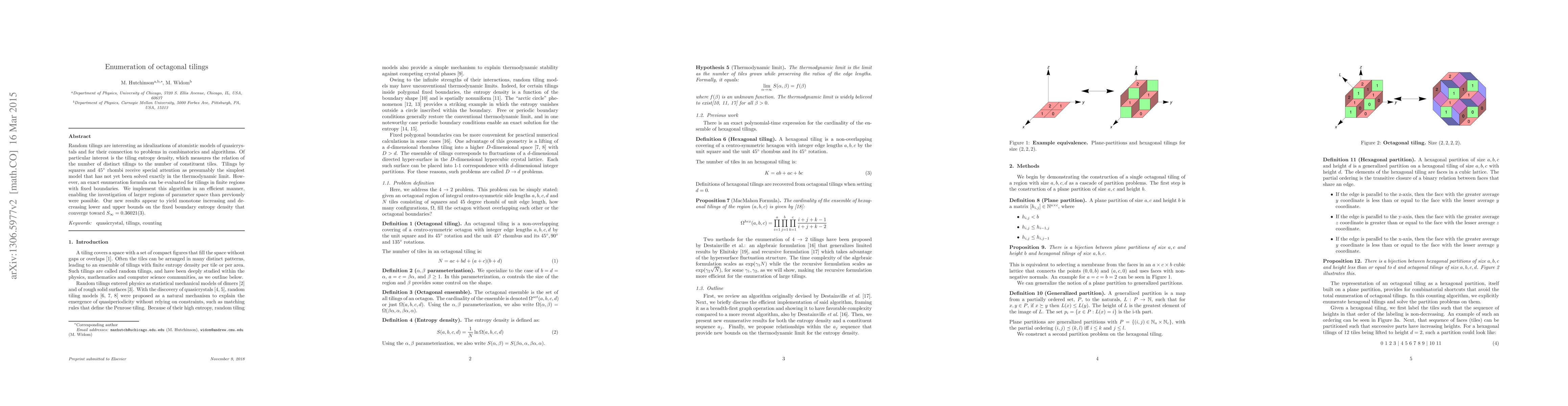 The paper develops an efficient algorithm for enumerating octagonal tilings, providing new insights into the entropy density in finite regions. The results indicate converging bounds on the entropy density, suggesting a value of S = 0.36021(3) in the thermodynamic limit.