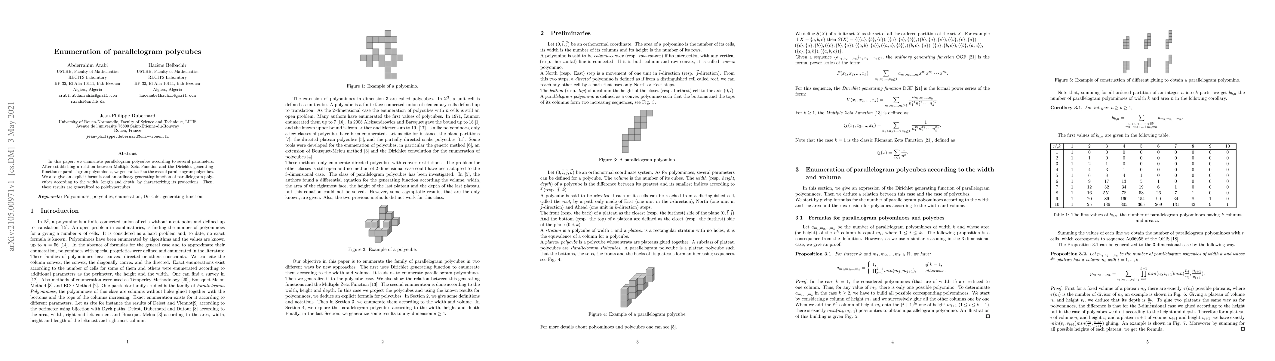 This paper enumerates parallelogram polycubes based on their width, length, and depth, and establishes a relation between the Multiple Zeta Function and the Dirichlet generating function. It provides an explicit formula and an ordinary generating function for these polycubes, and extends the findings to polyhypercubes.