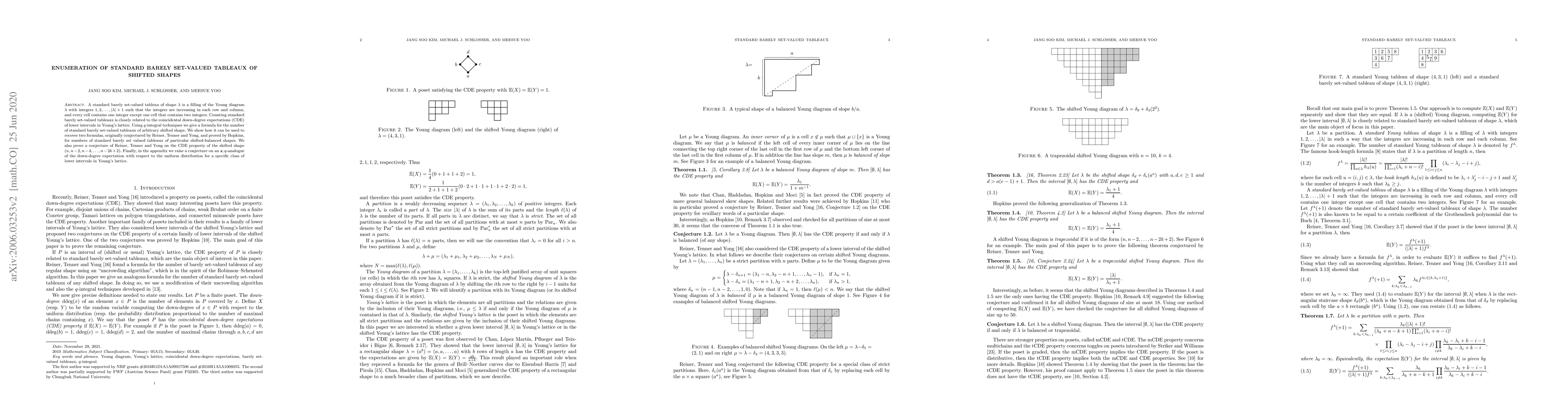 A standard barely set-valued tableau of shape $\lambda$ is a filling of the Young diagram $\lambda$ with integers $1,2,\dots,|\lambda|+1$ such that the integers are increasing in each row and column, and every cell contains one integer except one cell that contains two integers. Counting standard barely set-valued tableaux is closely related to the coincidental down-degree expectations (CDE) of lower intervals in Young's lattice. Using $q$-integral techniques we give a formula for the number of standard barely set-valued tableaux of arbitrary shifted shape. We show how it can be used to recover two formulas, originally conjectured by Reiner, Tenner and Yong, and proved by Hopkins, for numbers of standard barely set valued tableaux of particular shifted-balanced shapes. We also prove a conjecture of Reiner, Tenner and Yong on the CDE property of the shifted shape $(n,n-2,n-4,\dots,n-2k+2)$. Finally, in the Appendix we raise a conjecture on an $\mathsf a;q$-analogue of the down-degree expectation with respect to the uniform distribution for a specific class of lower order ideals of Young's lattice.