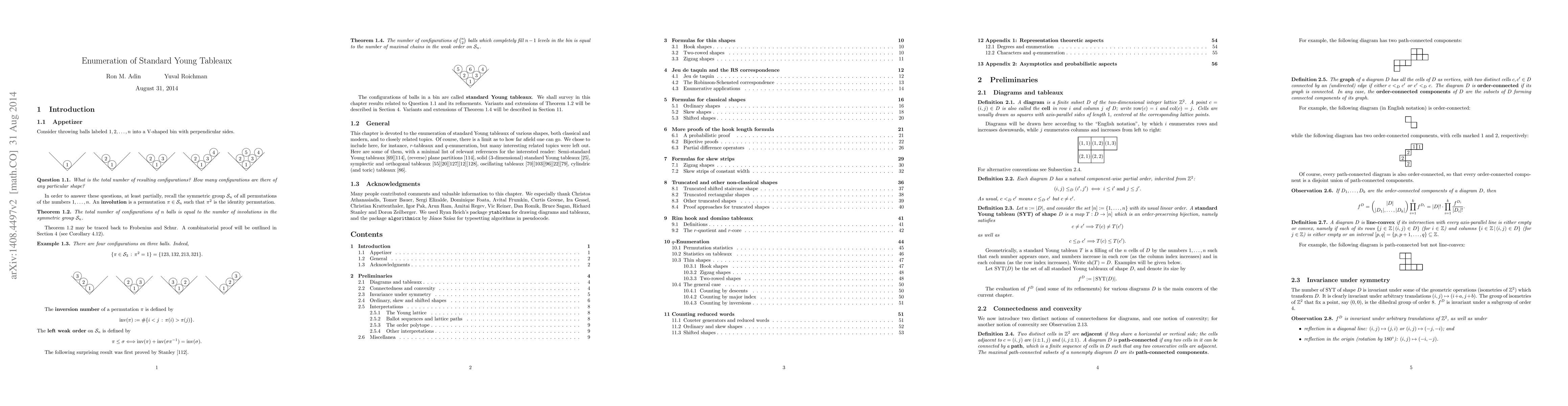 This paper surveys key findings on enumerating standard Young tableaux, a concept in combinatorics used to count permutations. It summarizes the latest developments in this area of research, with implications for fields like algebra and computer science.