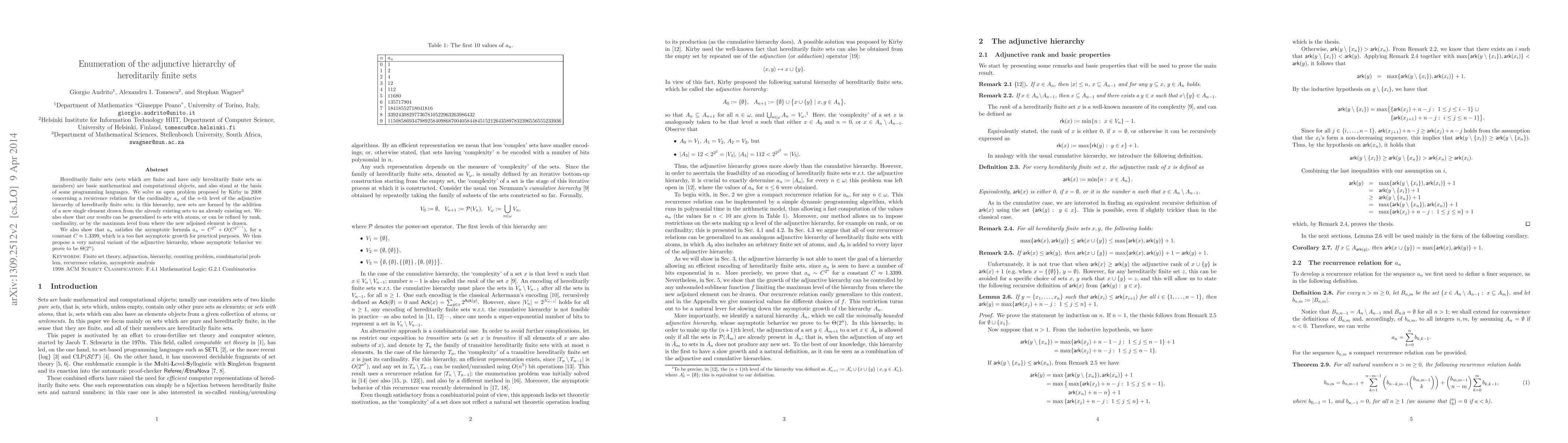 This paper solves a long-standing problem in mathematics by determining the cardinality of each level in Kirby's adjunctive hierarchy of hereditarily finite sets, finding that it grows too fast for practical purposes.