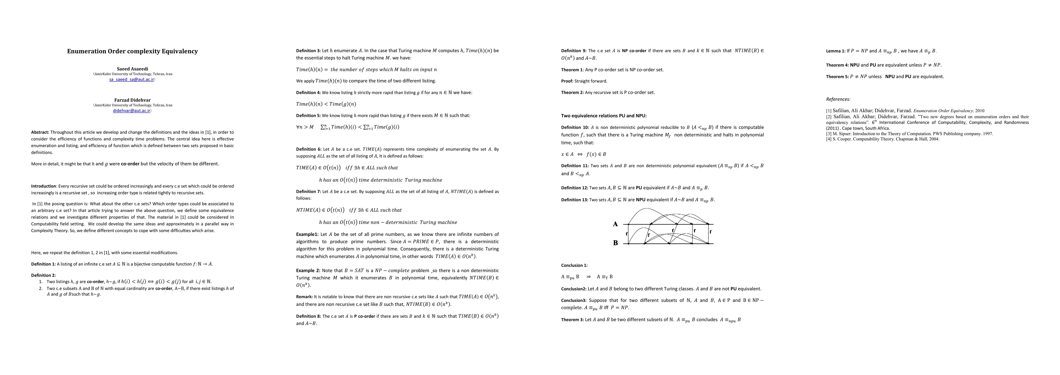 This paper redefines and refines concepts from "arXiv:1006.4939" to explore the efficiency of functions and time complexity problems, focusing on effective enumeration and the differing speeds between co-order functions h and g.