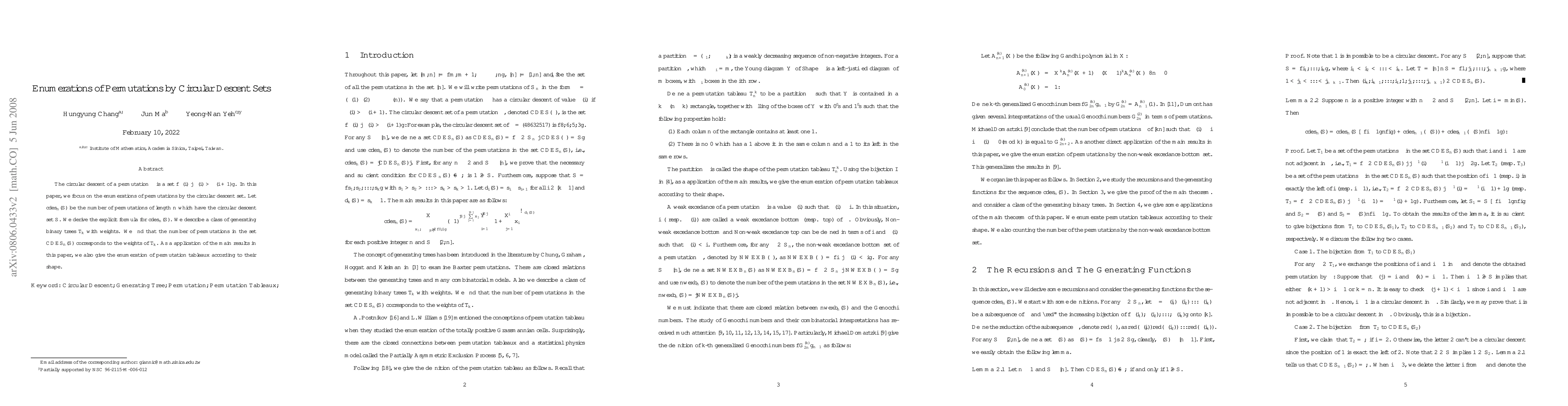 The circular descent of a permutation $\sigma$ is a set $\{\sigma(i)\mid \sigma(i)>\sigma(i+1)\}$. In this paper, we focus on the enumerations of permutations by the circular descent set. Let $cdes_n(S)$ be the number of permutations of length $n$ which have the circular descent set $S$. We derive the explicit formula for $cdes_n(S)$. We describe a class of generating binary trees $T_k $ with weights. We find that the number of permutations in the set $CDES_n(S)$ corresponds to the weights of $T_k$. As a application of the main results in this paper, we also give the enumeration of permutation tableaux according to their shape.