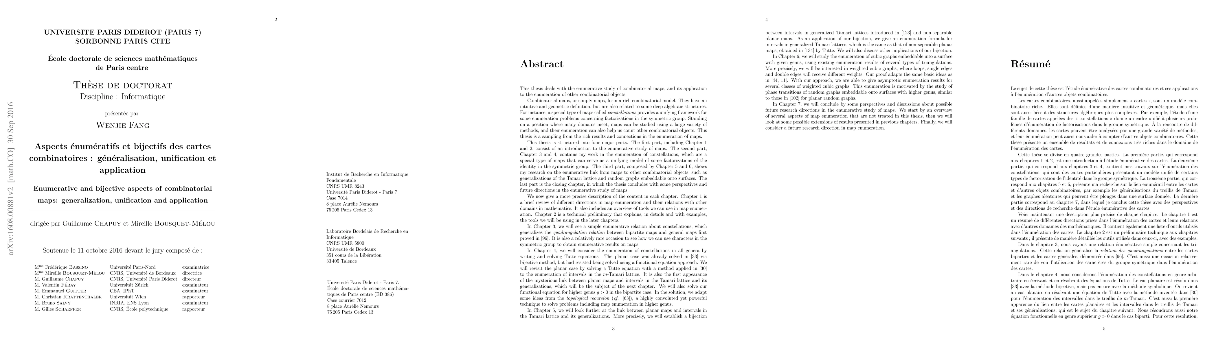 This PhD thesis explores the enumerative aspects of combinatorial maps, focusing on their application to counting other combinatorial objects. It delves into the enumeration of special maps called constellations, which unify certain factorization problems, and extends the enumeration to broader combinatorial structures like the Tamari lattice and random graphs on surfaces.