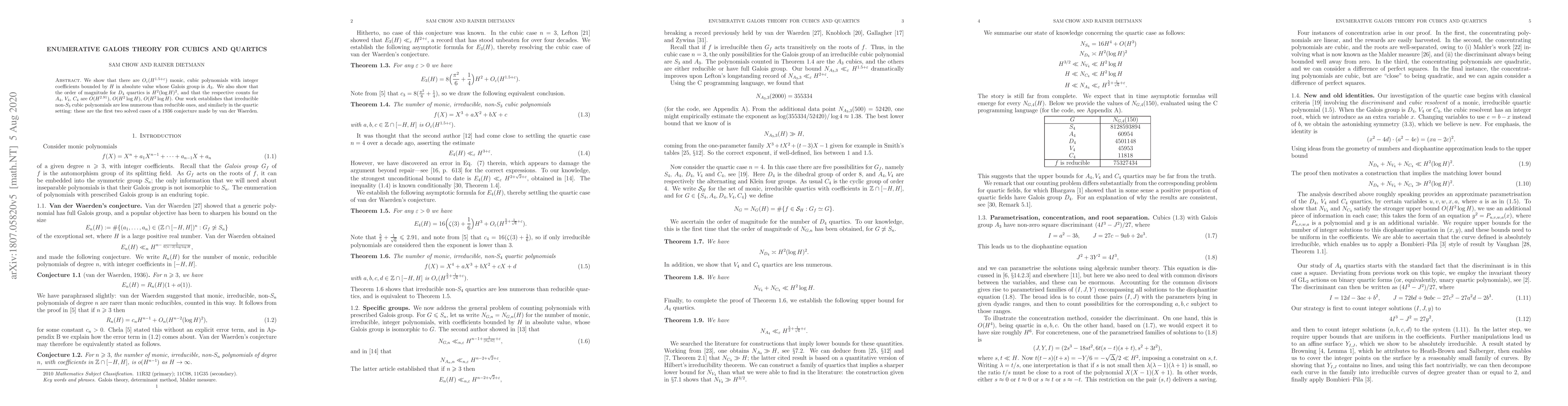 Summary: This paper provides the first evidence for van der Waerden's 1936 conjecture on the enumeration of Galois groups for cubic and quartic polynomials, showing that cubics with Galois group $A_3$ are $O_\varepsilon(H^{1.5+\varepsilon})$ in number and quartics with Galois group $D_4$ are $H^2 (\log H)^2$ in number. It also establishes that reducible cubic and quartic polynomials outnumber their irreducible counterparts.